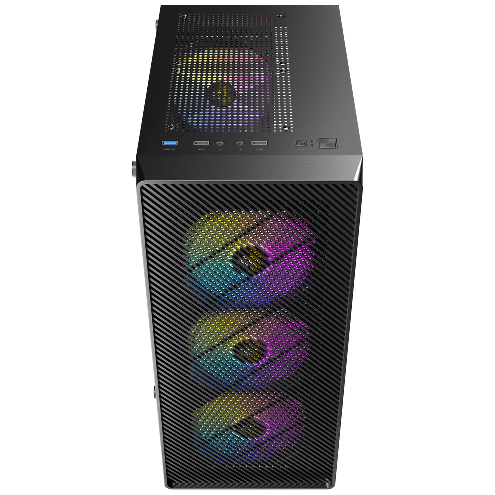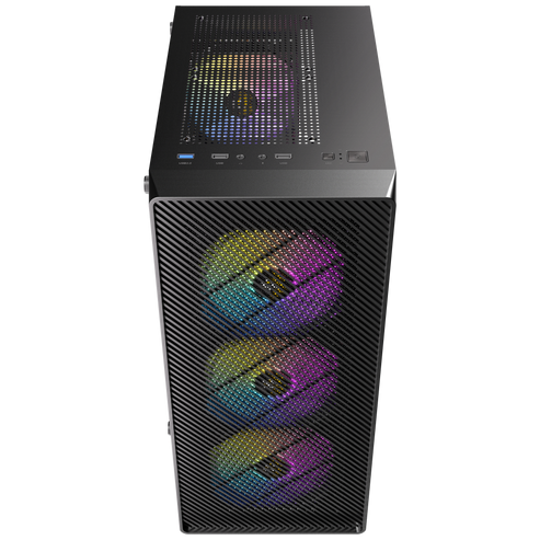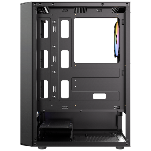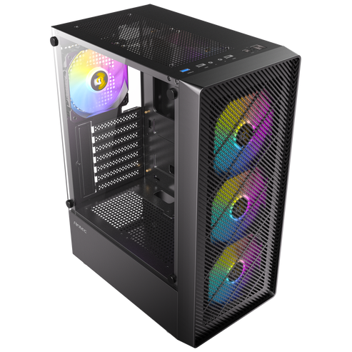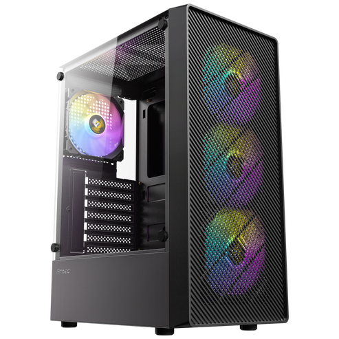 AX26 RGB Elite features a grille-style front panel that enhances airflow for efficient cooling. With a half-view tempered glass side panel, it provides a sleek and stylish showcase for your build.