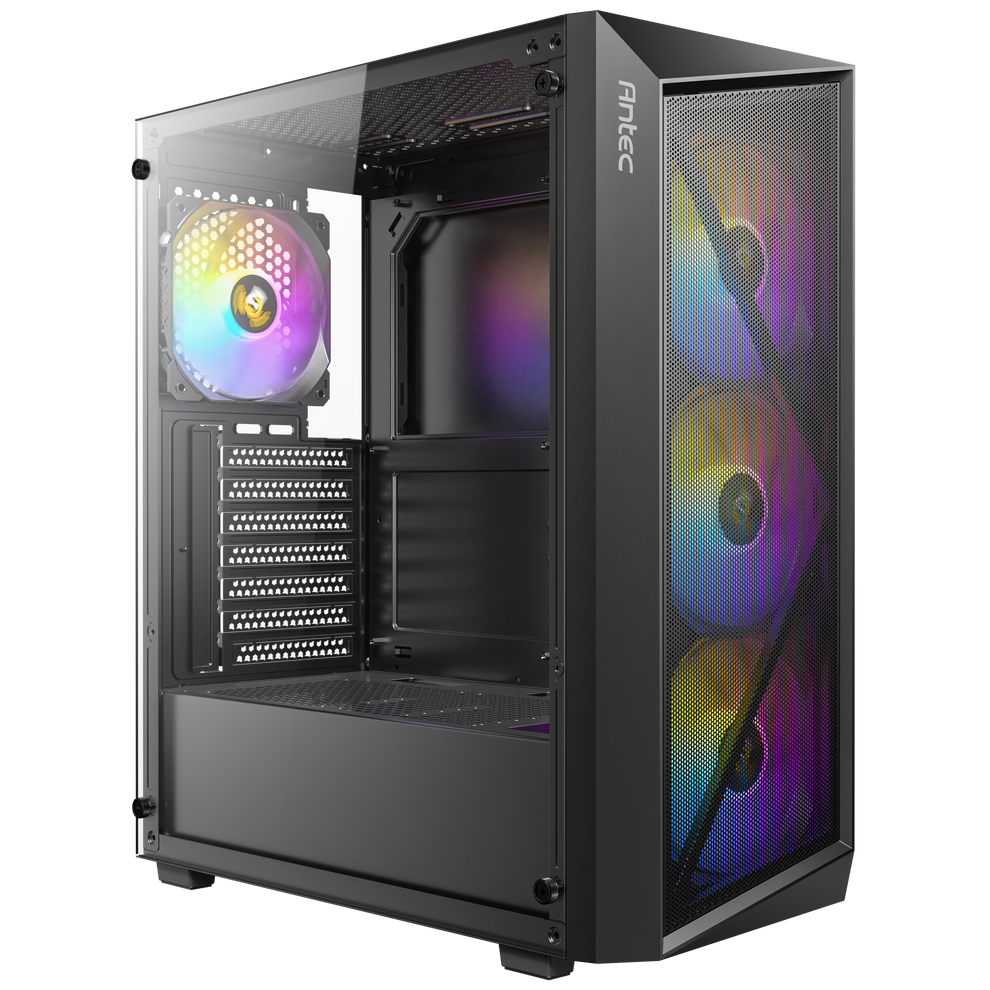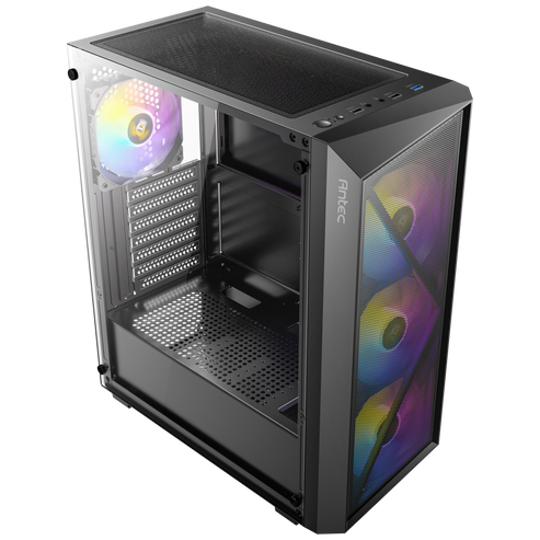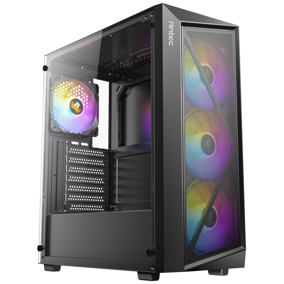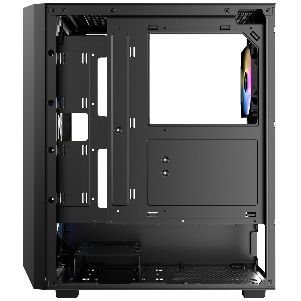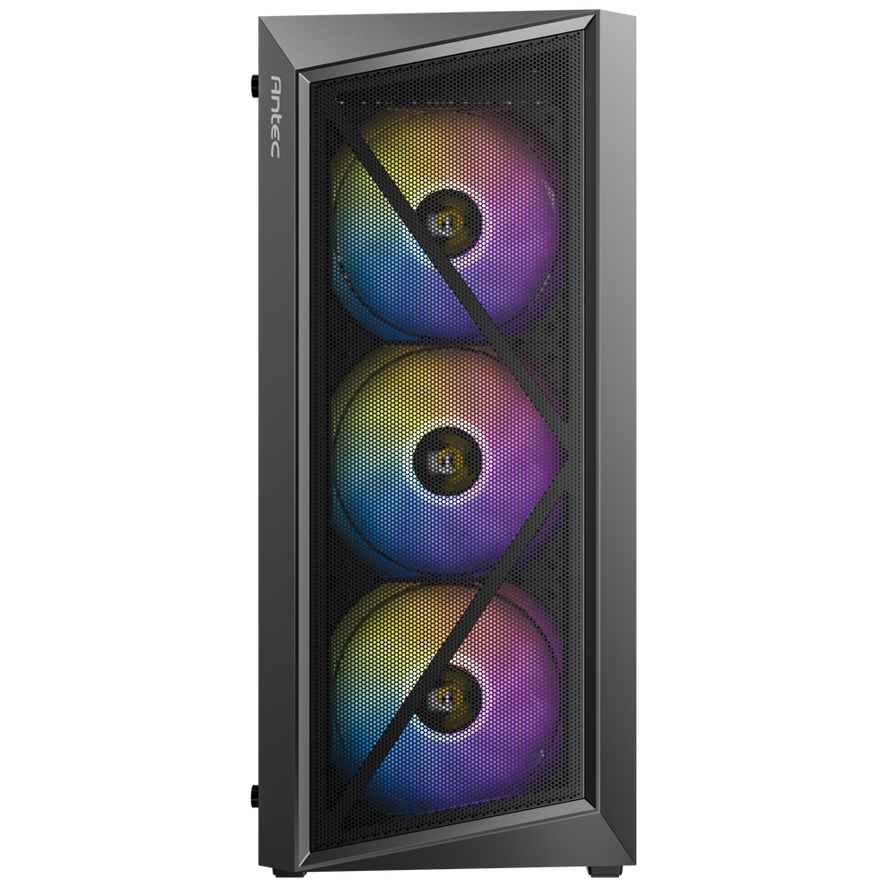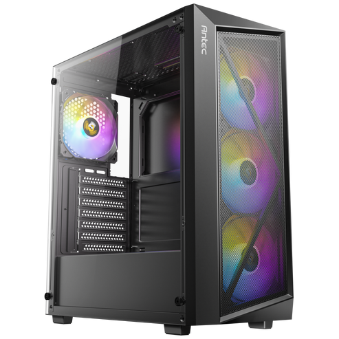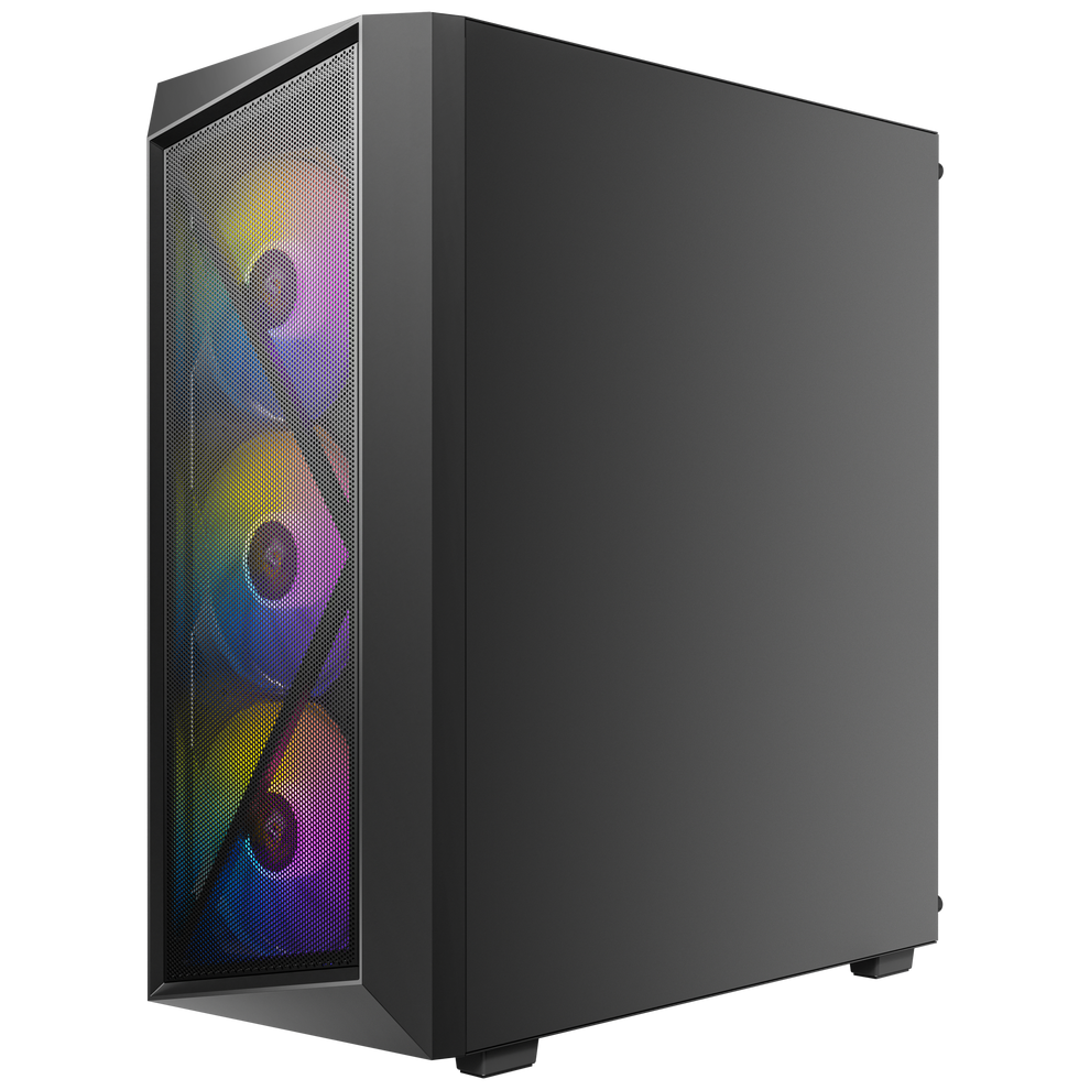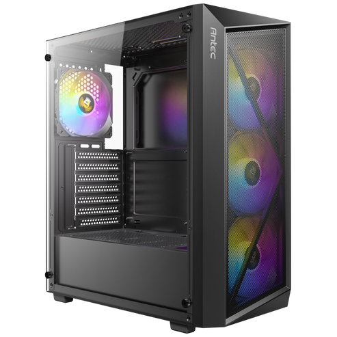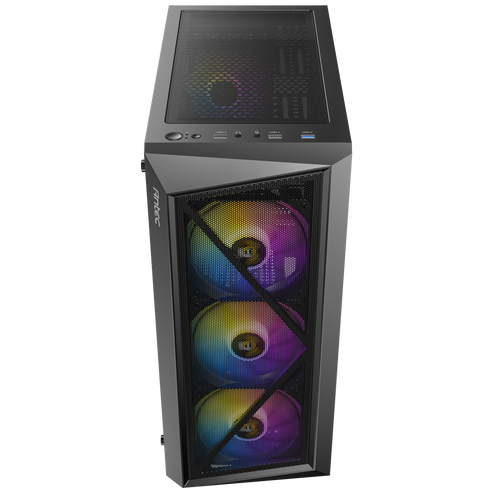 The AX67 ARGB features a unique design and excellent cooling performance. Its full tempered glass side panel offers an unobstructed view of your gaming setup, while vibrant ARGB lighting enhances the experience with dynamic visual effects.