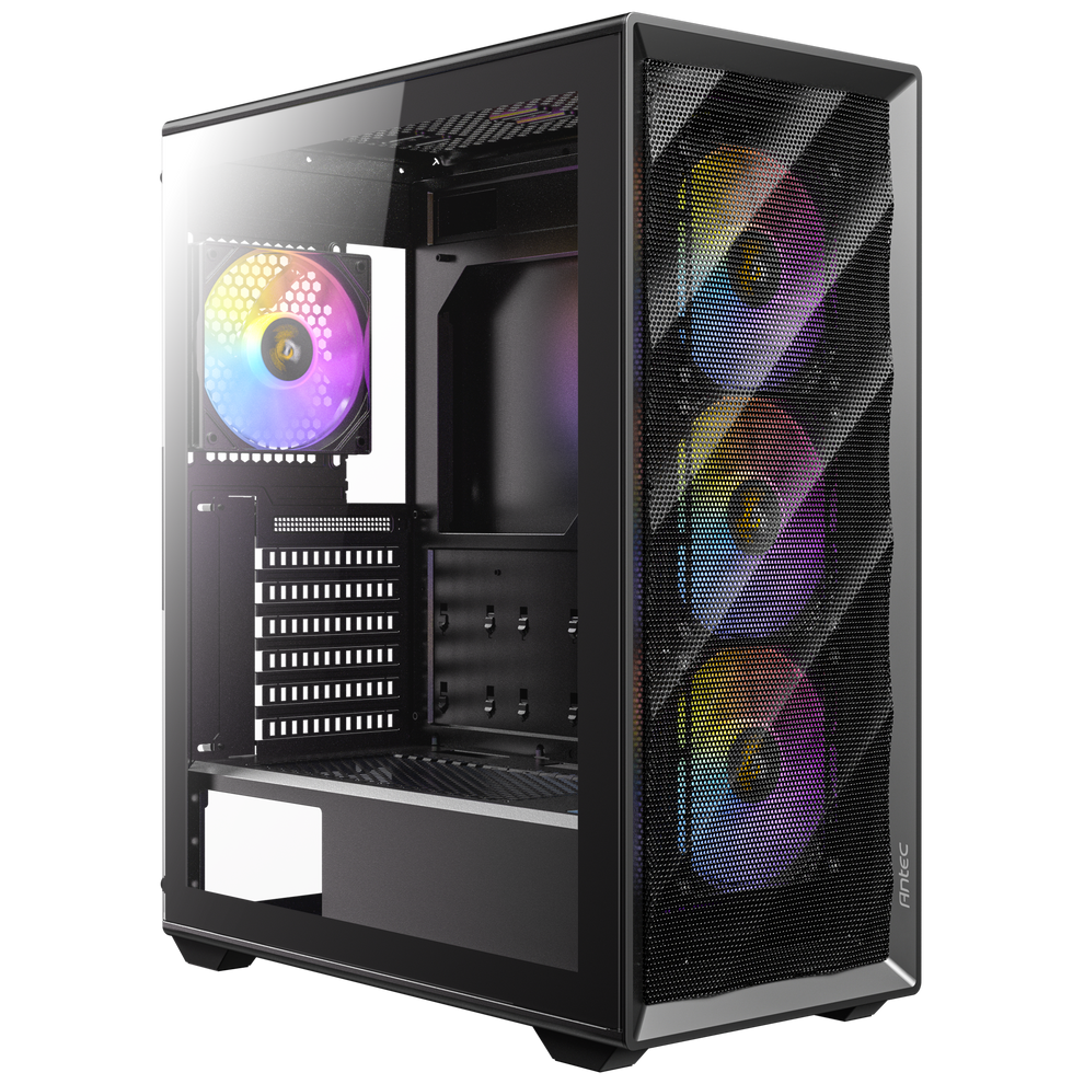 The AX85 ARGB features a unique design and excellent cooling performance. The full tempered glass side panel allows you to show off your gaming configurations without any obstacles. 8 x 120mm fans can be installed simultaneously.