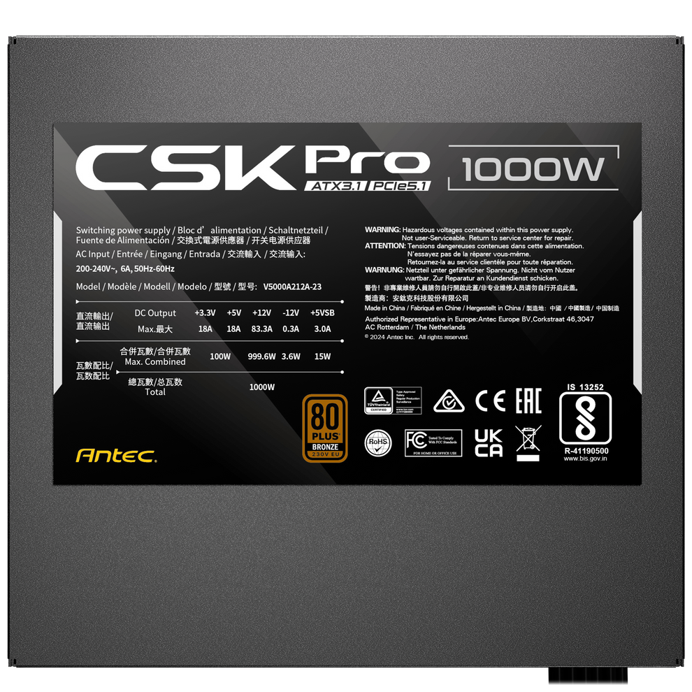 Introducing our CSK Pro ATX3.1 semi-modular power supply, designed with quality, efficiency, and performance. The CircuitShieldTM suite of industrial-grade protections ensure the power delivered to your system is safe and reliable in any environment. Advancing with ATX 3.1 & PCIe 5.1 compatibility, featuring 80 PLUS® BRONZE certification, and coming with Antec’s 5-year warranty, CSK Pro ATX3.1 provides you the impressive price-performance ratio.