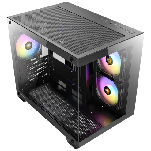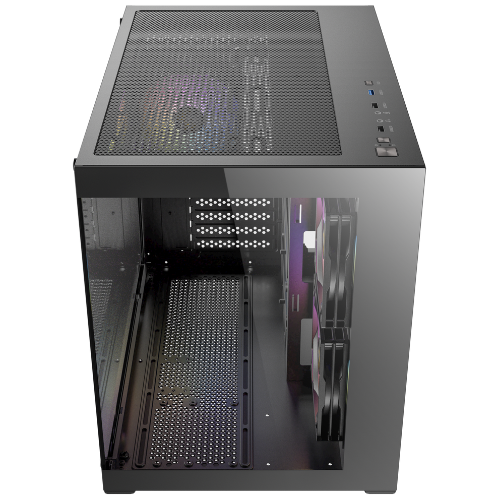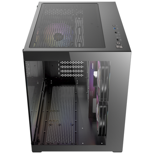 A large amount of air is taken in through the mesh on bottom and side, facilitating heat dissipation and protect hardware from overheating.