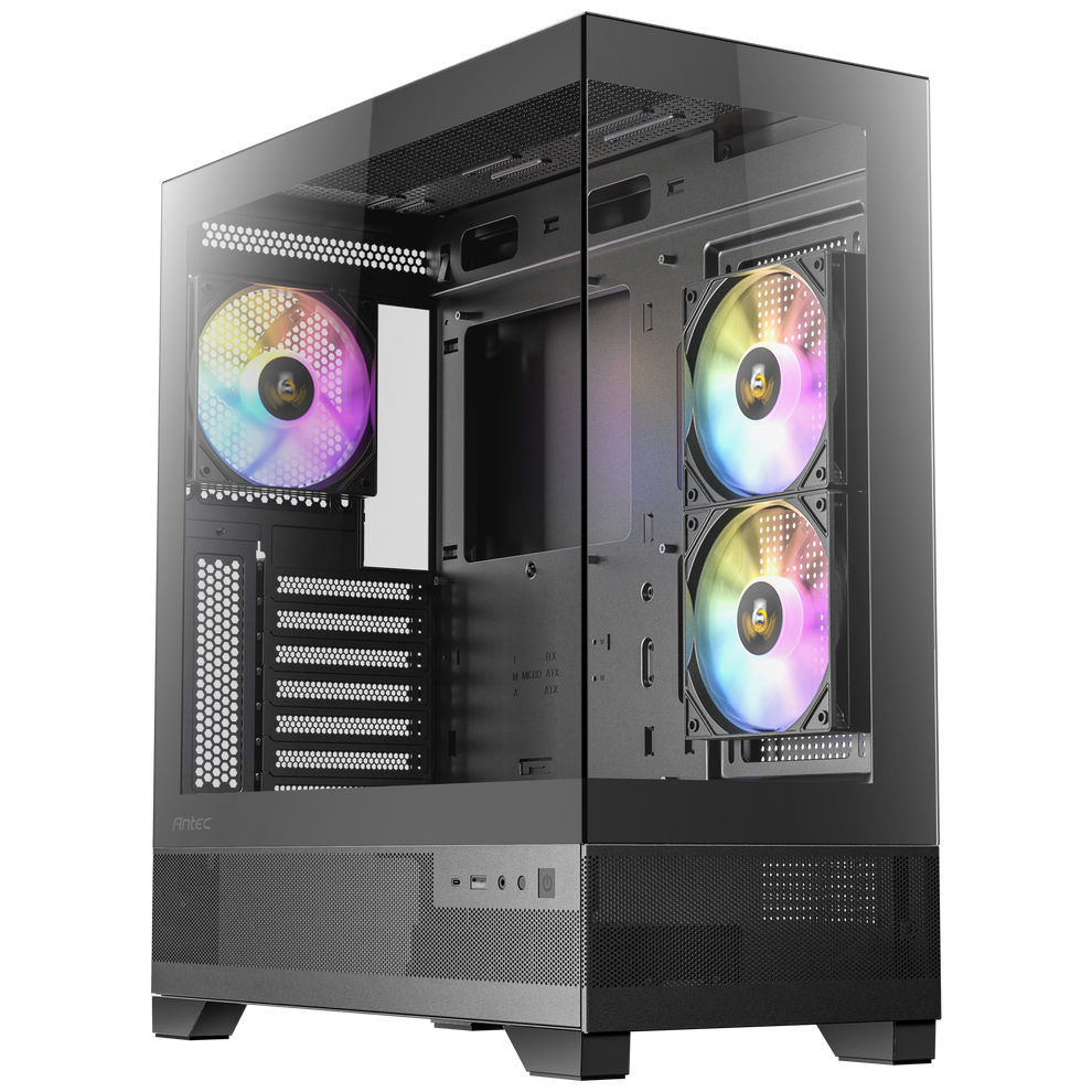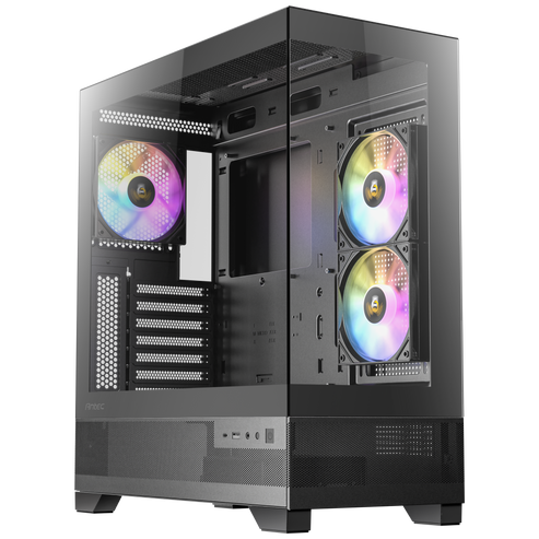 The Antec CX700 ARGB is a mid-tower gaming case with a sleek design featuring a full-view tempered glass panel. It offers robust cooling with two 120mm ARGB PWM reverse fans on the right and a 120mm ARGB PWM fan in rear. A full-view tempered glass panel lets you showcase your PC components.