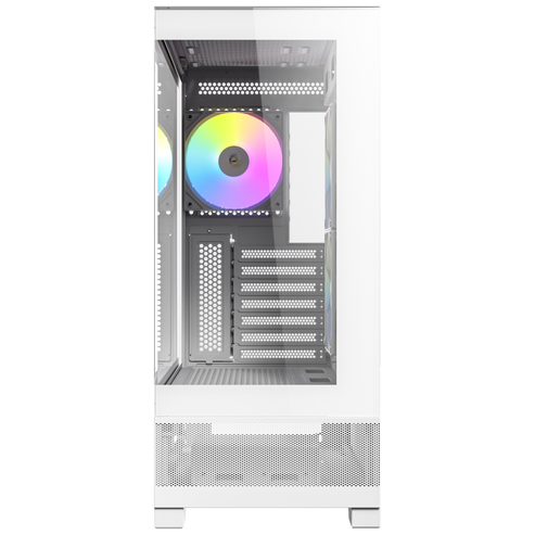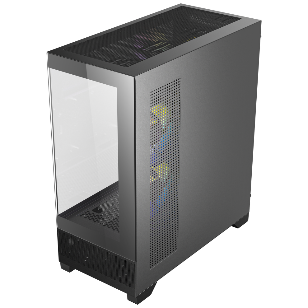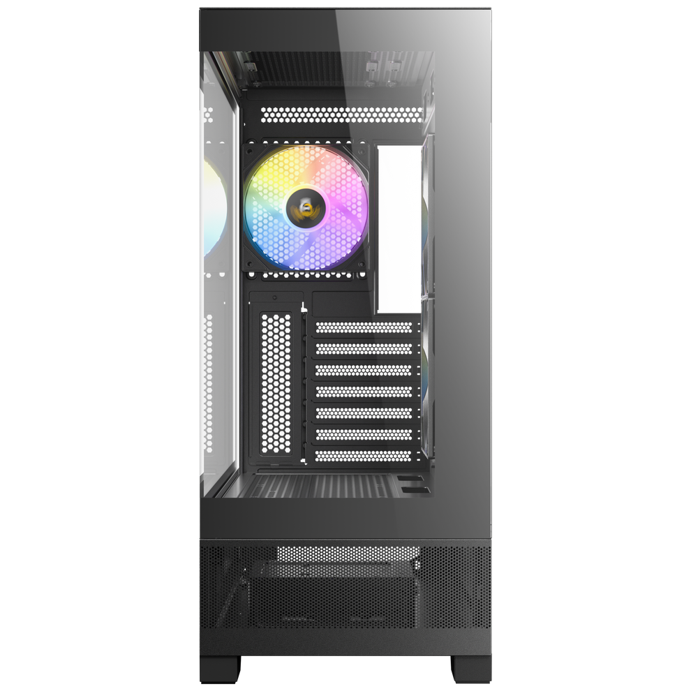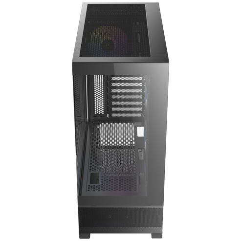 Improves airflow and heat dissipation with bottom-up vertical airflow through mesh panels on the lower front, sides, and bottom. -