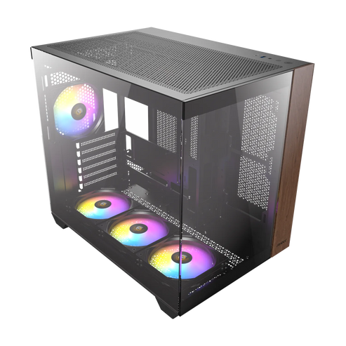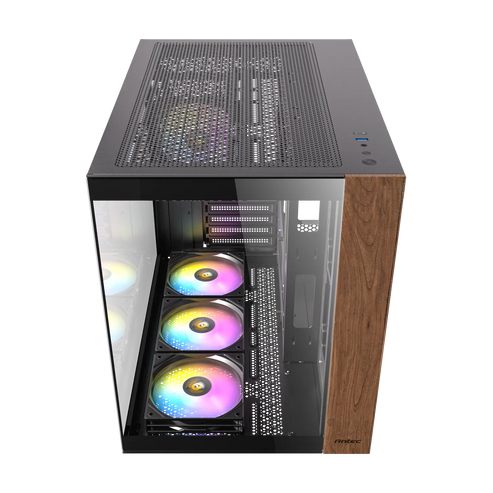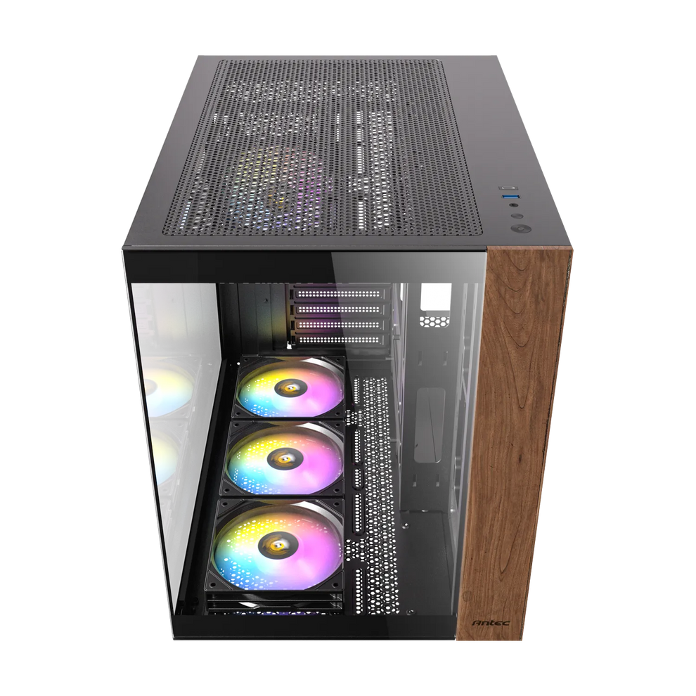 The Antec CX800 ARGB mid-tower gaming cases boast a panoramic 270° glass view and are built with a dual chamber design to ensure independent cooling for your CPU/GPU and PSU/Drives. The case is available in black, white, as well as a wood finish.