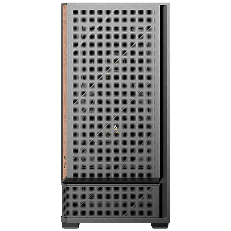 Large metal mesh front panel with premium wood accents and chamfered design.